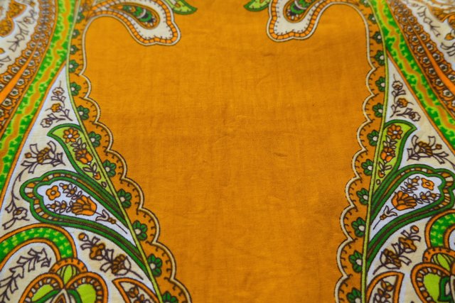サイケデリックなペイズリー柄にアンダーバスト部分の紐でアレンジできるデザインが魅力的な1980年代頃のヨーロピアンヴィンテージエスニックワンピース