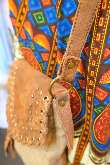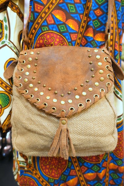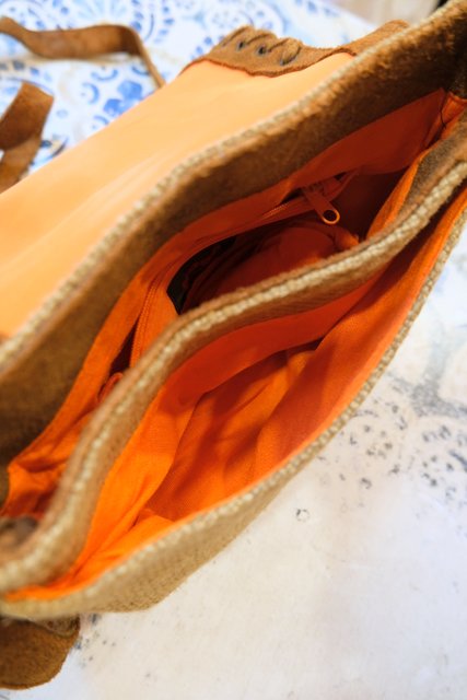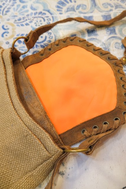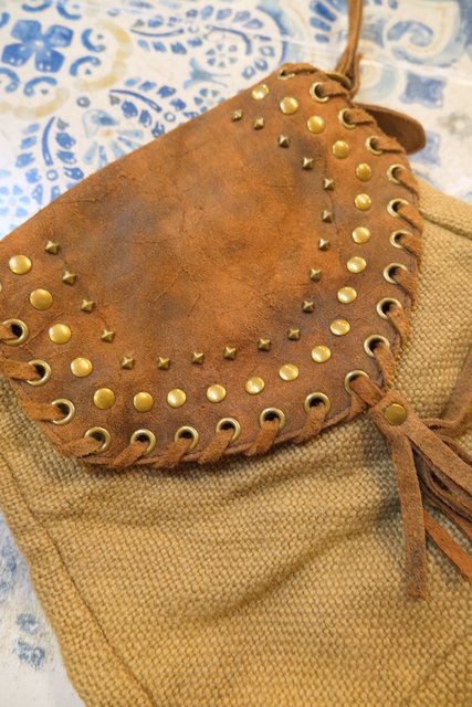 スタッズ×フリンジ付きの本革デザインにオレンジ色の裏地が可愛らしいヨーロピアンヒッピーバッグ フェスやイベントにおススメ!