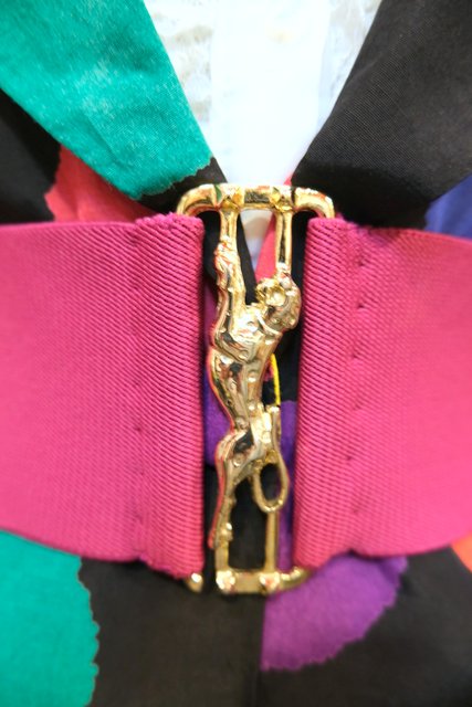 ウエストが細く見える幅広ラバーにゴールドのヒョウバックルがカッコいいヨーロピアンウエストマークベルト