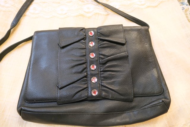 エレガントにもマニッシュな印象にもなるビジュー付きのリボン風デザインがお洒落なイタリア製ショルダーバッグ クラッチバッグにもなる2Wayデザイン!