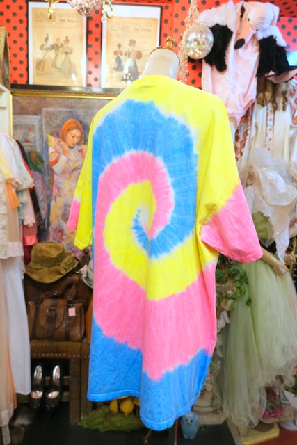色鮮やかな蛍光タイダイデザインにビッグシルエットがカッコ可愛い1980年代頃のヨーロピアンTシャツ ★SALE★