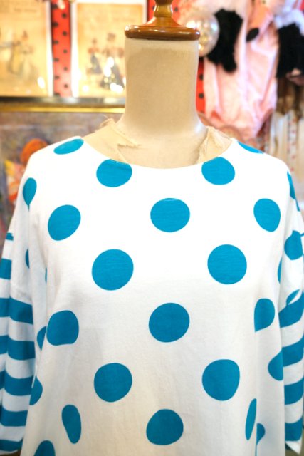 レトロポップな水玉×ボーダー切り替えデザインにオーバーサイズが可愛らしい1980年代頃のヨーロピアンロングTシャツ ★SALE★