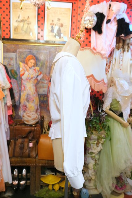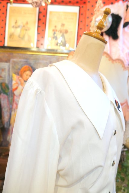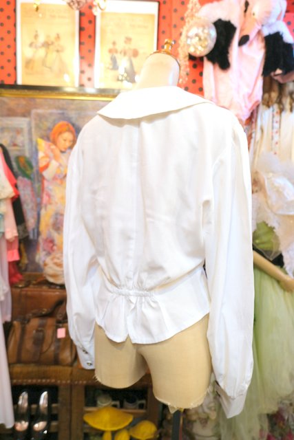襟先が尖ったクエーカーカラーに帽子アップリケ付きやパフスリーブデザインが可愛らしい1980年代頃のヨーロピアンブラウスジャケット ★SALE★