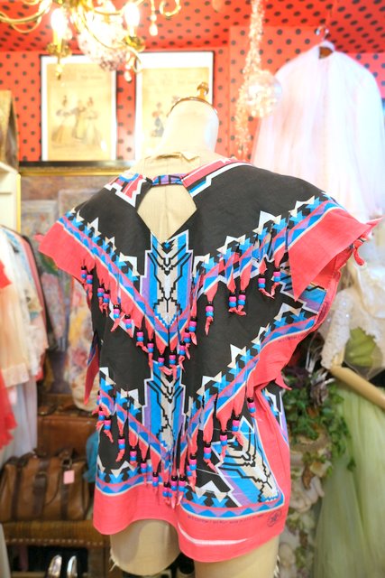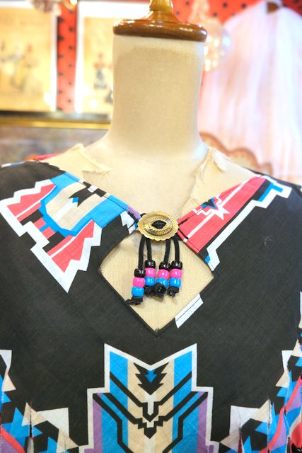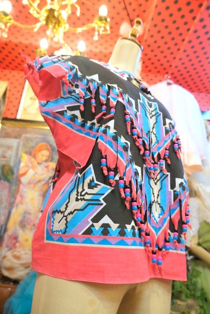 カラフルポップなネイティブ柄バンダナにビーズ付きのフリンジデザインや首元のコンチョが可愛らしいUSA製カットソー ★SALE★