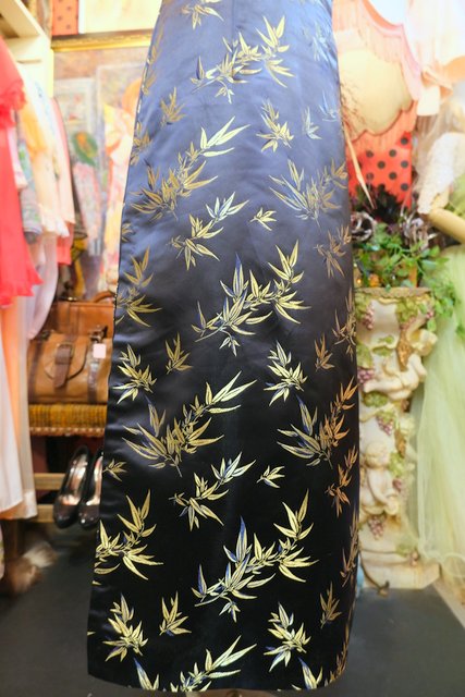 光沢感がある濃紺ベースにエレガントな笹デザインやタイトなシルエットがカッコいいヨーロピアンチャイナドレス
