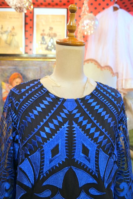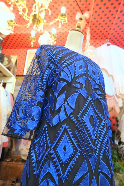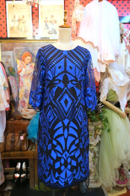 ヨーロッパ古着マニッシュモード刺繍シフォンドレス