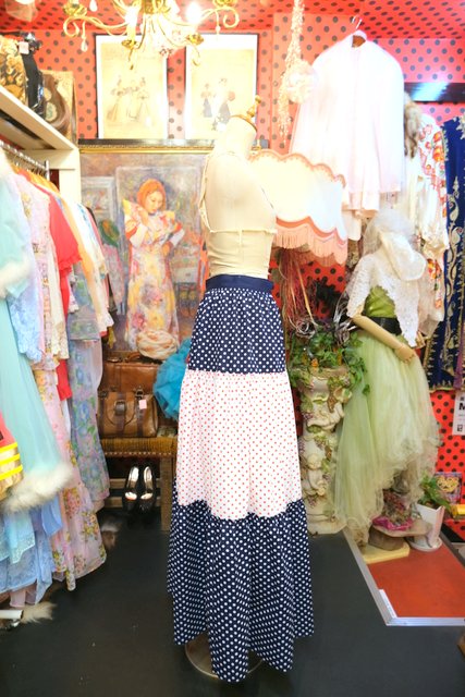 ヨーロッパ古着70sレトロポップ水玉ロングスカート