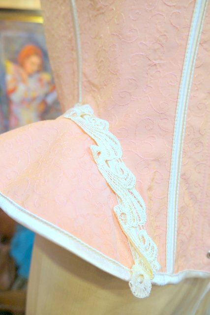 淡いピンクベースにエレガントなレースや両サイドのフレアデザインが魅力的なヨーロピアンコルセット