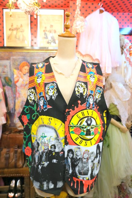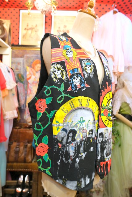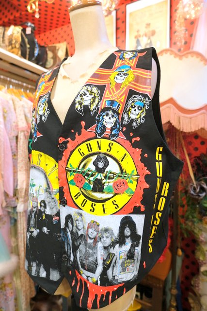 1980~90年代頃のガンズ・アンド・ローゼズがプリントされたイタリア製ロックベスト Tシャツやブラウス、ニット、コートなど色々組み合わせてコーディネートできるお洒落アイテム!