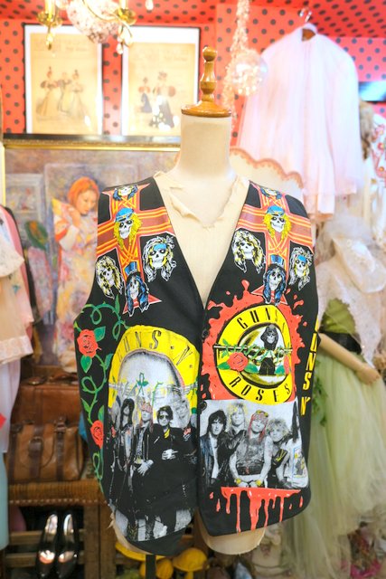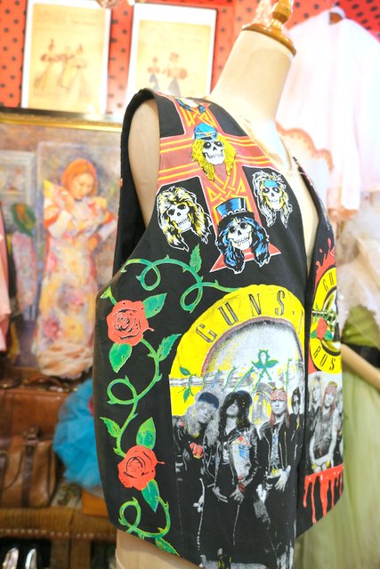 1980~90年代頃のガンズ・アンド・ローゼズがプリントされたイタリア製ロックベスト Tシャツやブラウス、ニット、コートなど色々組み合わせてコーディネートできるお洒落アイテム!
