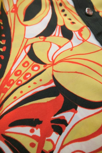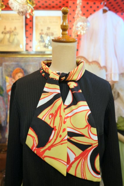 エレガントな印象のスカーフカラーに大きな花柄プリントが目を惹く1960~70年代頃のヨーロピアンヴィンテージワンピース