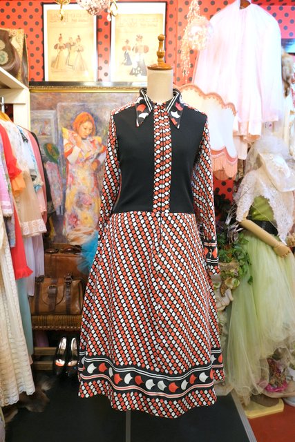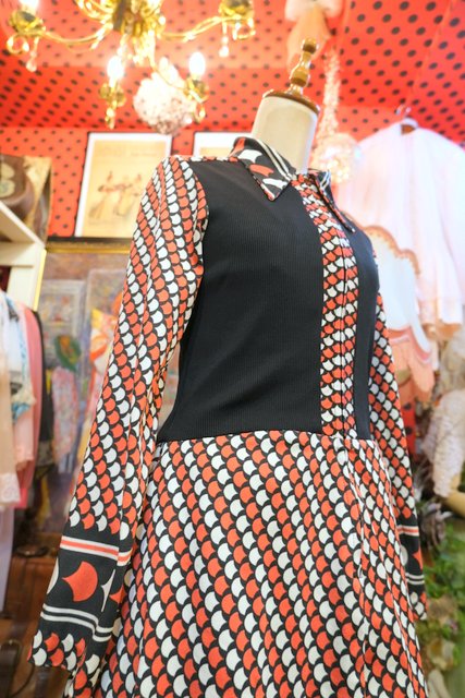 ヨーロッパ古着70sヴィンテージレトロモダンワンピース