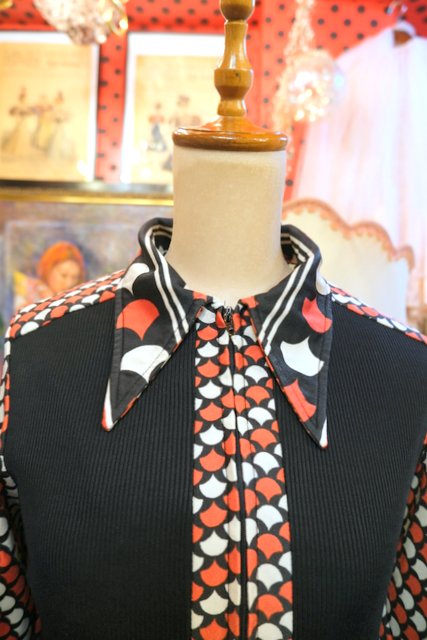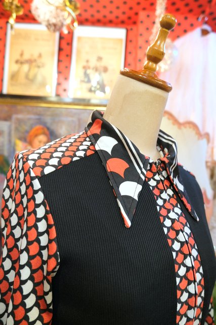 レトロポップな2種類のドット切り替えデザインに先の尖った襟が…
