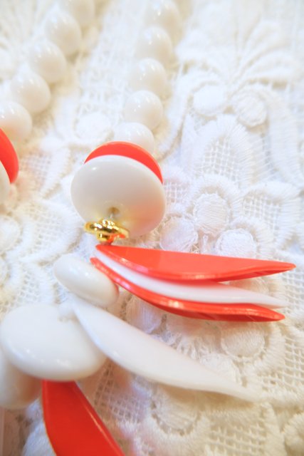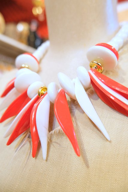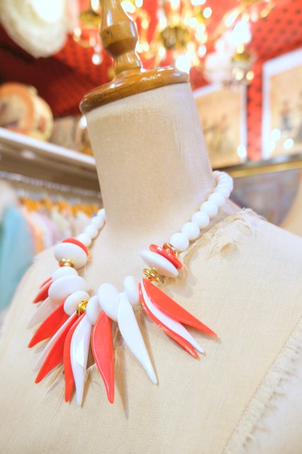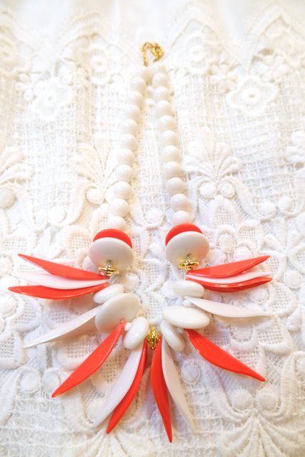 赤×白の個性的なデザインが目を惹くベルギーで見つけた1970年代頃のヨーロピアンヴィンテージネックレス シンプルクローズのアクセントにおススメ!
