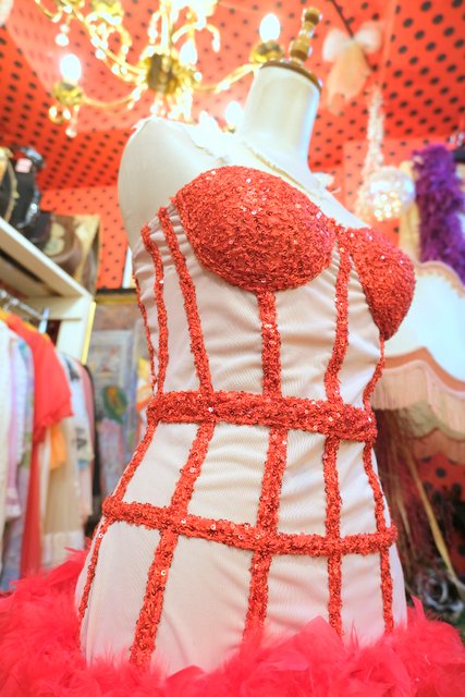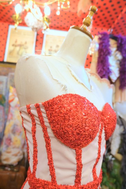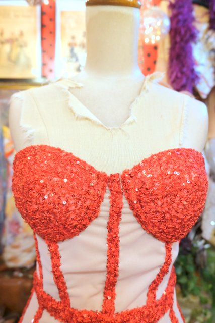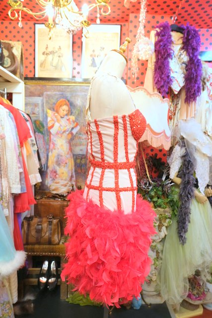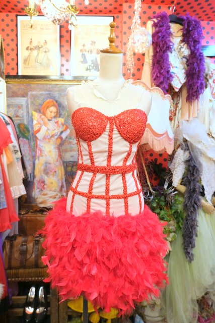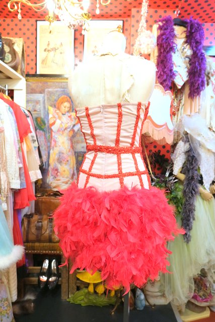 ヨーロッパ古着コルセット×羽フェザーパーティードレス