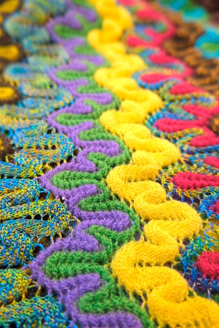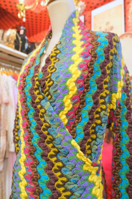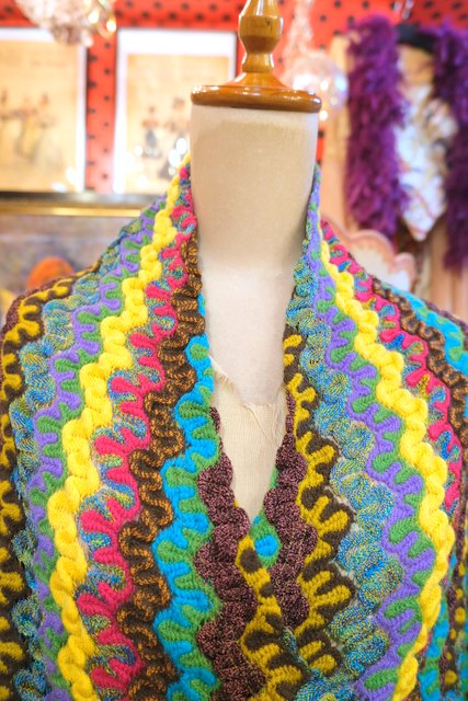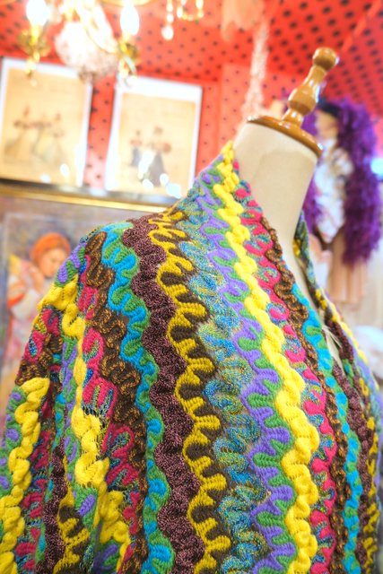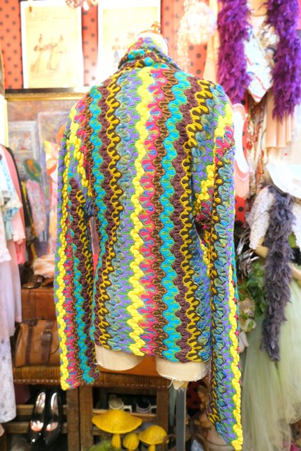 エレガントな印象のカシュクール×ショールカラーに色鮮やかで繊細な織りが特徴的!パリで見つけた1980~90年代頃のデザイナー小西良幸のブランドFicceニット