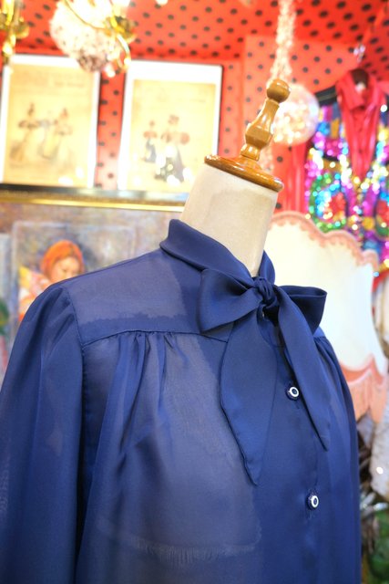 ヨーロッパ古着リボンスカーフカラーシフォンブラウス