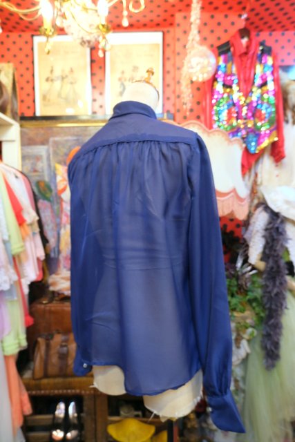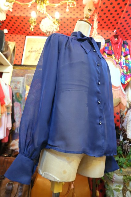 透け感があるシフォン生地にエレガントにもマニッシュな印象にもなるリボンスカーフカラーが魅力的な1970年代頃のヨーロピアンブラウス