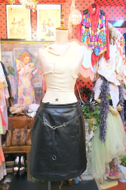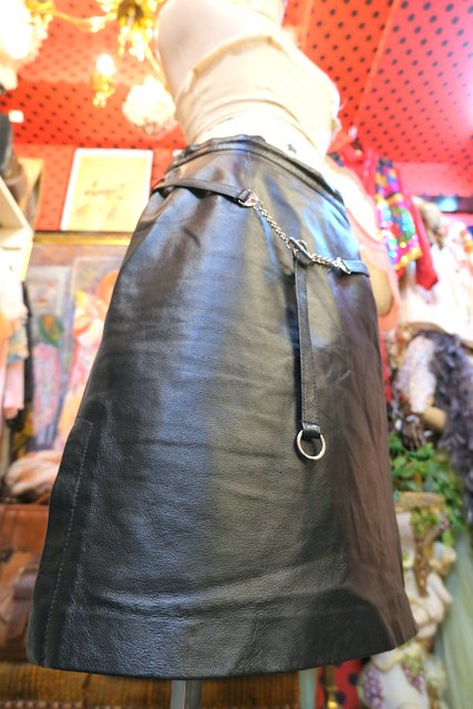 ヨーロッパ古着マニッシュモード黒レザースカート