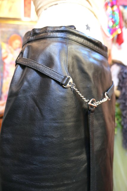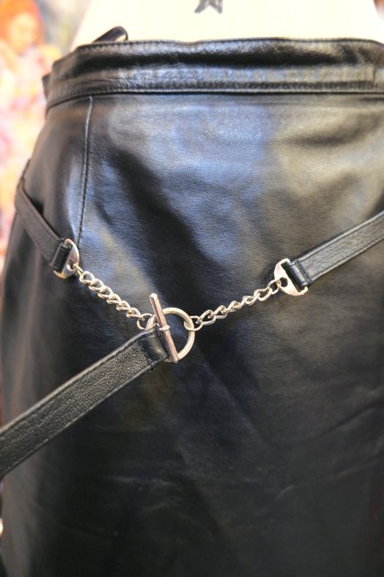 タイトでもオーバーシルエットなトップスでも相性◎!チェーン付きの飾りベルトデザインがお洒落なヨーロピアン本革スカート