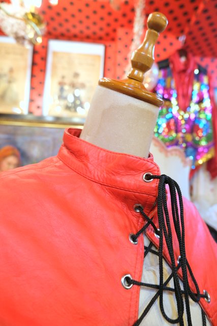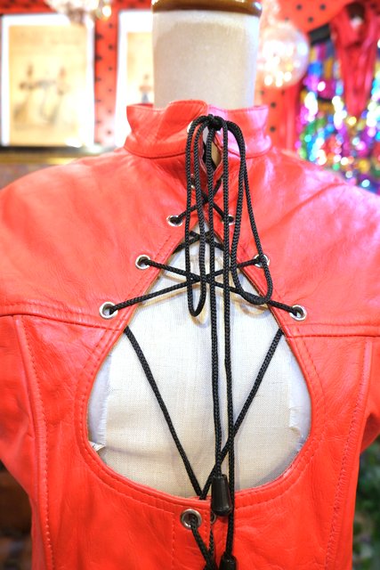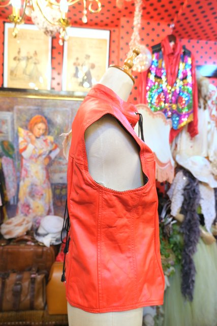 ヨーロッパ古着セクシー赤レザーコルセットトップス