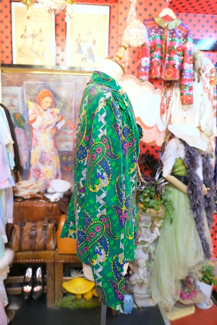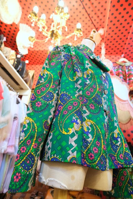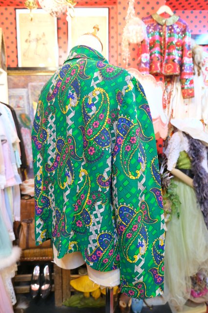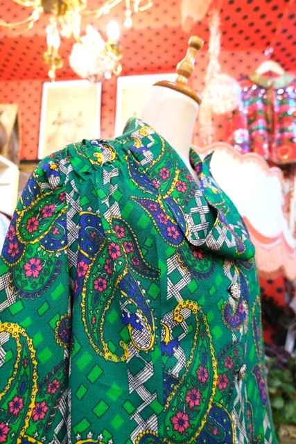 カラフルなサイケデリックペイズリー柄にレトロボタンやアレンジできる個性的な襟が魅力的な1960~70年代頃のヨーロピアンヴィンテージブラウス