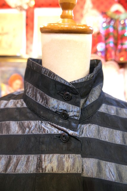 クールな印象のスタンドカラーにボリュームパフスリーブがカッコ可愛い1980年代頃のヨーロピアンヴィンテージブラウス