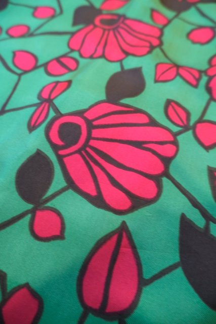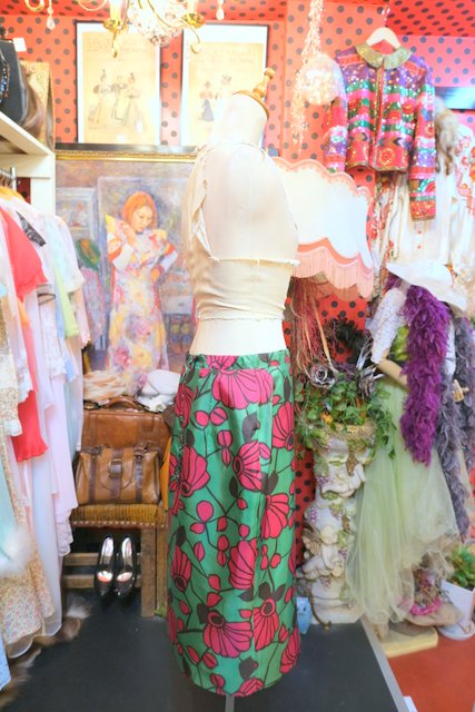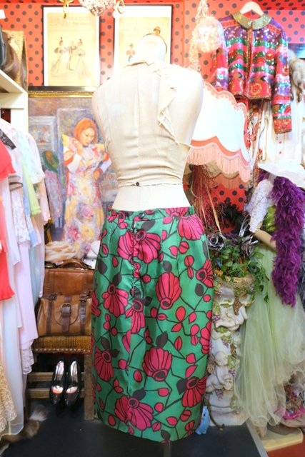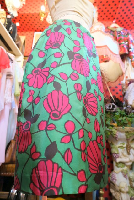 グリーンベースに華やかでモダンな花柄デザインが魅力的な1960~70年代頃のヨーロピアンヴィンテージスカート