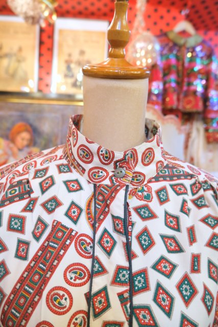 ヨーロッパ古着70sフランス製レトロポップ水玉シャツ