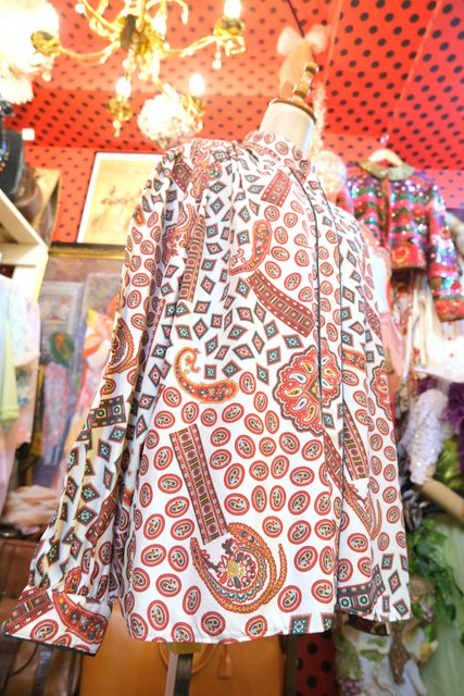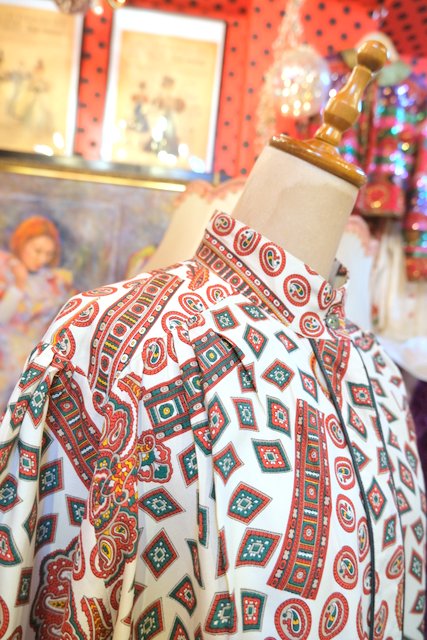 ヨーロッパ古着80sレトロモードペイズリー柄ブラウス