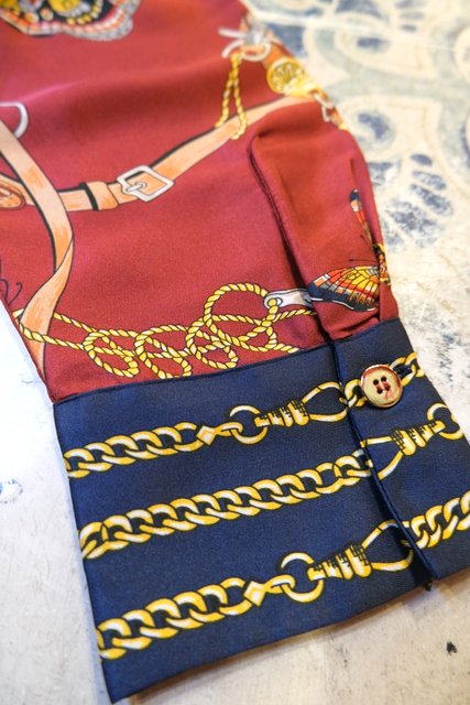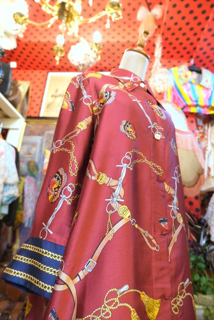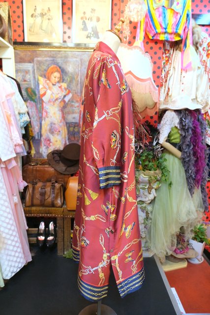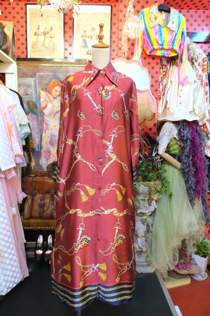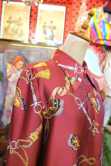 ヨーロッパ古着レトロモダン蝶チェーン柄ワンピース