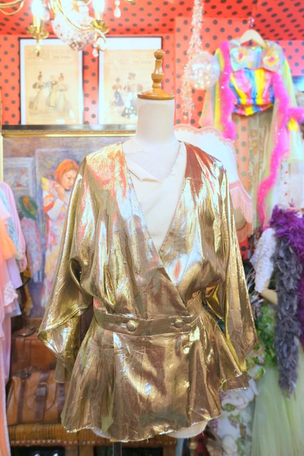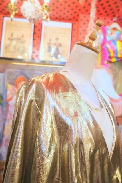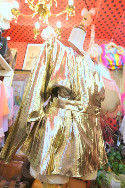 ゴージャスなゴールドメタリック生地に大人エレガントなカシュクール×ドルマンスリーブデザインが魅力的な1980年代頃のUSA製ヴィンテージシャツジャケット