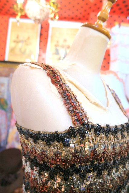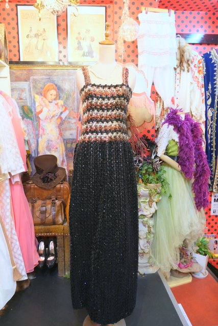 ヨーロッパ古着70sエレガントモダンスパンコールドレス