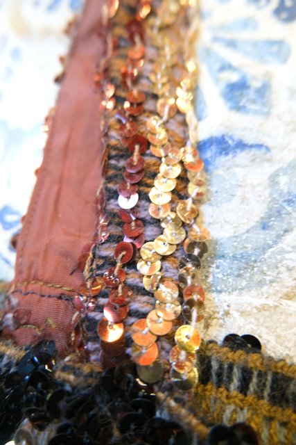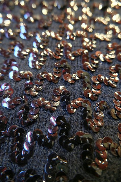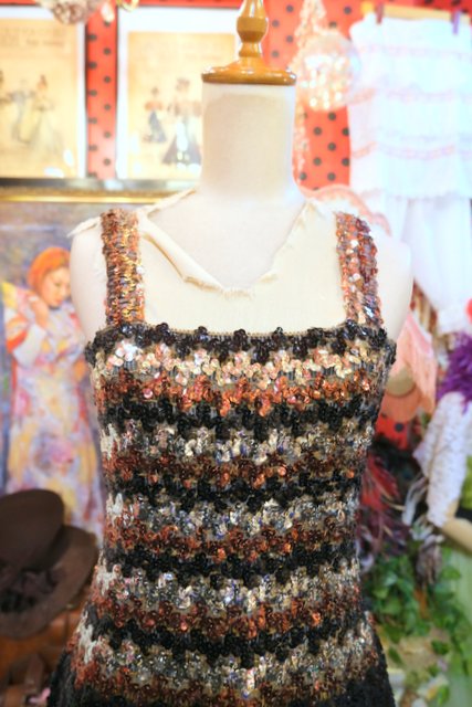黒、シルバー、茶系のスパンコールボーダー×タイトな黒スパンコールスカートが魅力的な1970年代頃のヨーロピアンヴィンテージパーティーニットドレス