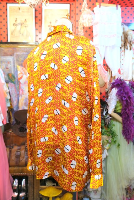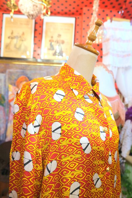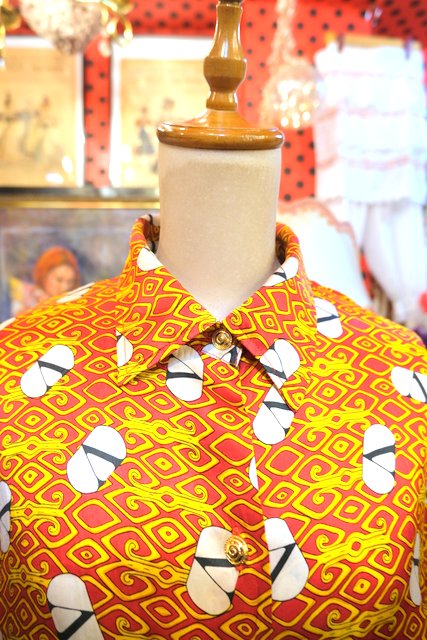 ヨーロッパ古着70sフランス製レトロポップ水玉シャツ