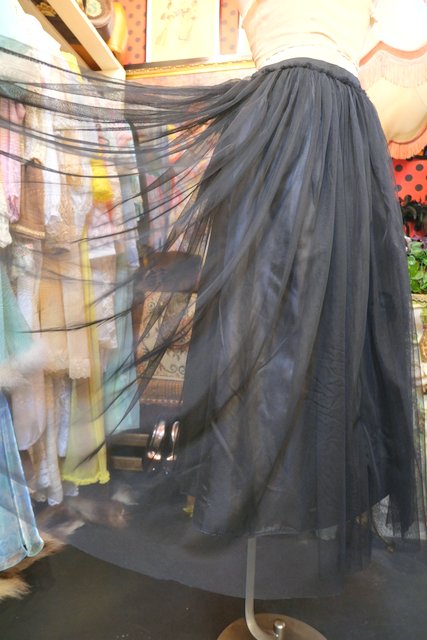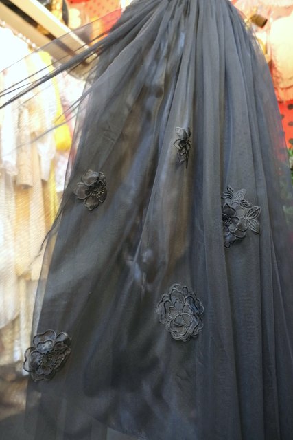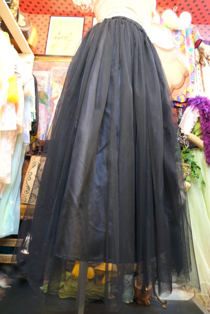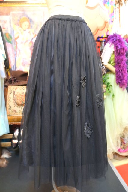 ヨーロッパ古着お花ワッペン黒チュールスカート