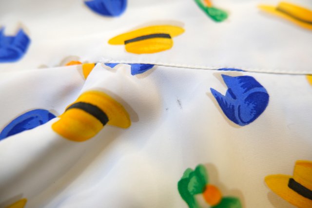 ヨーロッパ古着80sフランス製帽子柄レトロ半袖シャツ