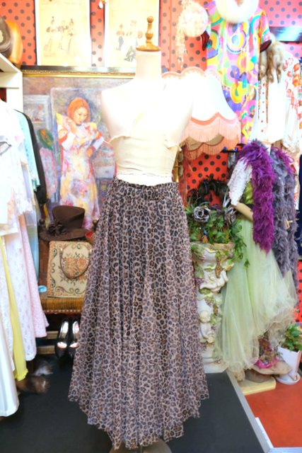 ヨーロッパ古着エレガントヒョウ柄シフォンスカート