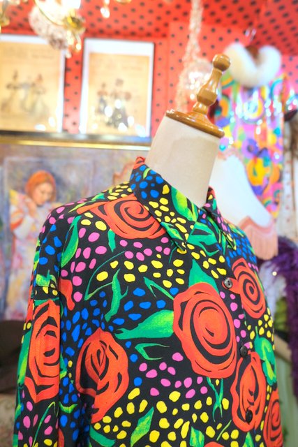 目を惹くカラフルポップなドットや花柄が魅力的な1970~80年代頃のフランス製ヴィンテージオーバーサイズシャツ