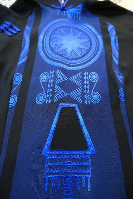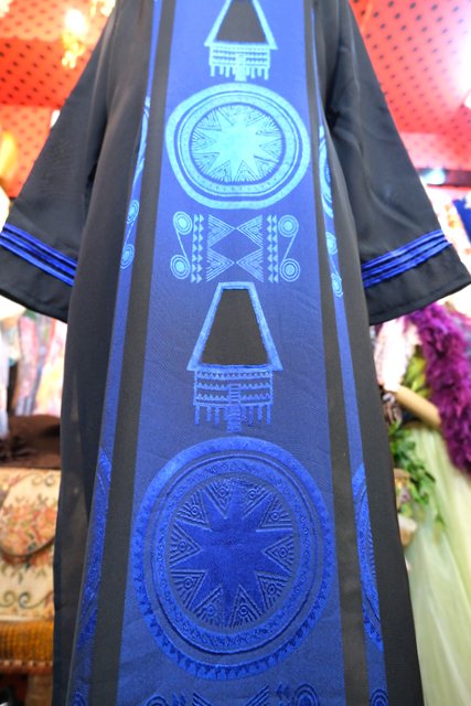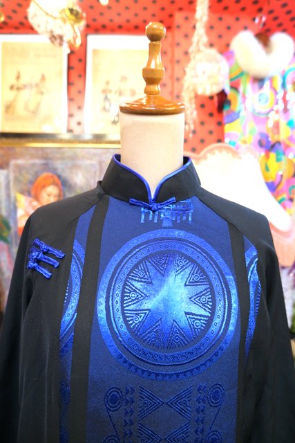 サラッと落ち感があるシルク生地に光沢がある模様やアジアンノットボタンがお洒落なヨーロピアンアオザイワンピース
