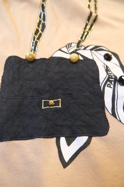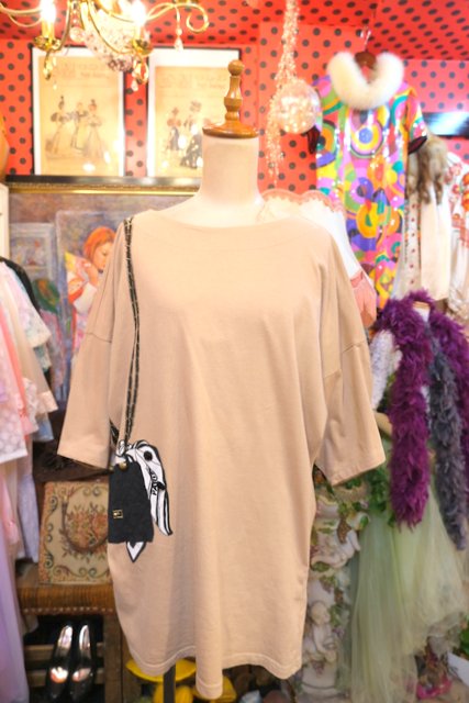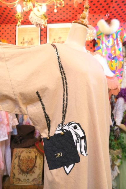 スカーフ付きのキルティングバッグ柄にオーバーサイズデザインがカッコ可愛い1980年代頃のフランス製ヴィンテージTシャツカットソー
