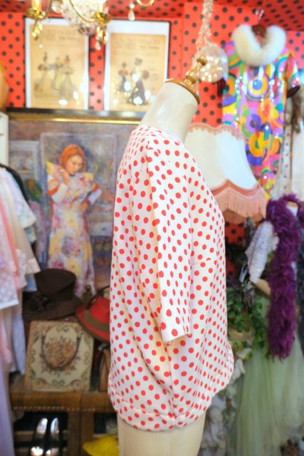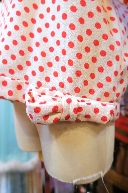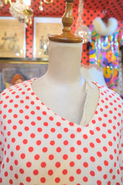 レトロポップなドット柄にアシンメトリーなVネックや裾のリボンが魅力的な1960~70年代頃のイタリア製ヴィンテージトップス ★SALE★