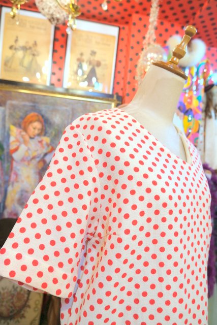 ヨーロッパ古着70sフランス製レトロポップ水玉シャツ
