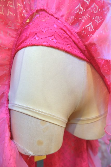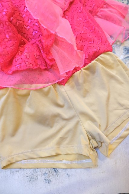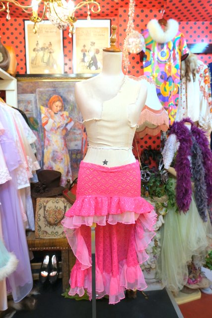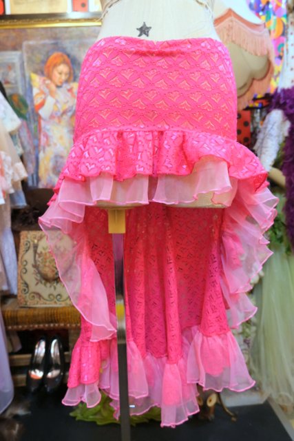ビビッドなハートレース×ピンクチュールフリルデザインに後ろ着丈が長いフィッシュテールが魅力的なヨーロピアンパーティースカート
