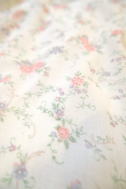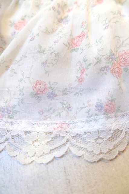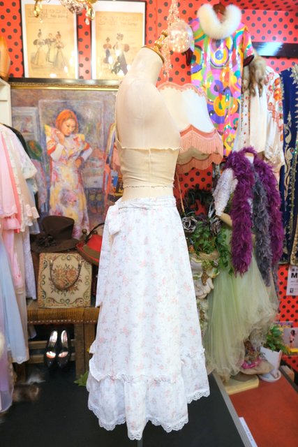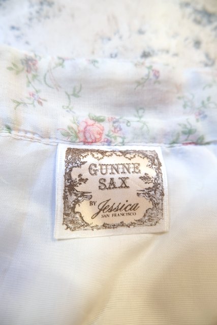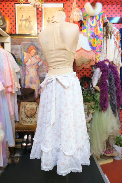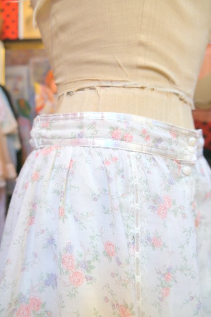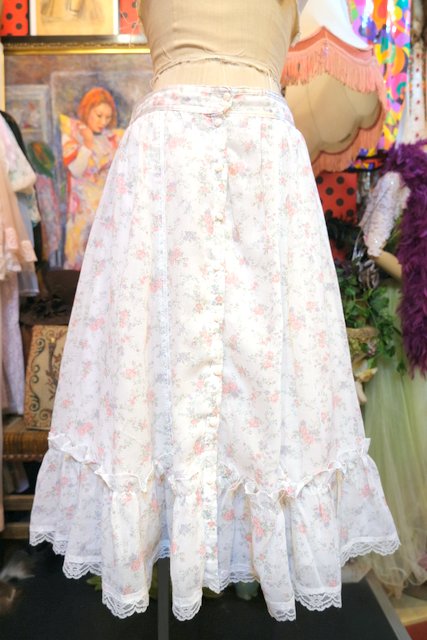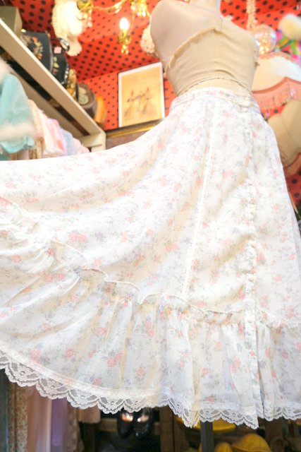 ガーゼ風な生地にロマンティックガーリーな花柄やレースデザインが魅力的な1970年代頃のGUNNESAXヴィンテージスカート