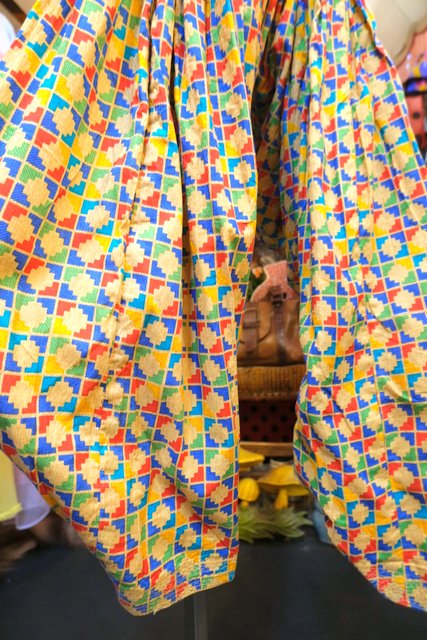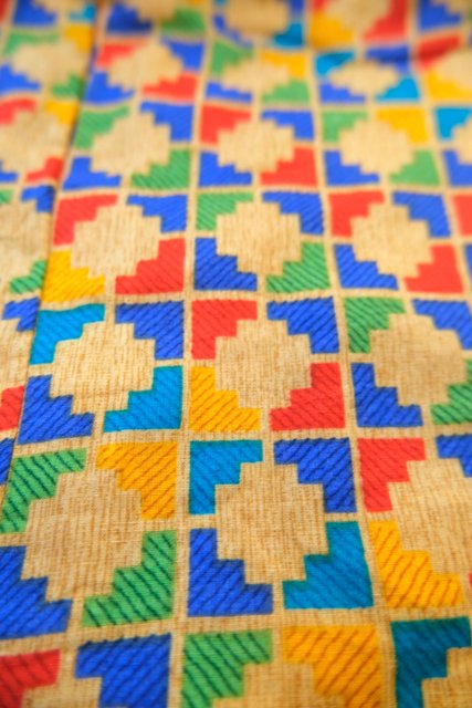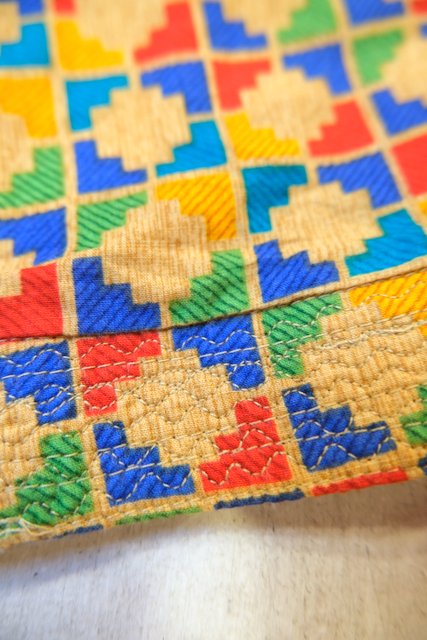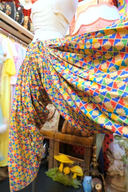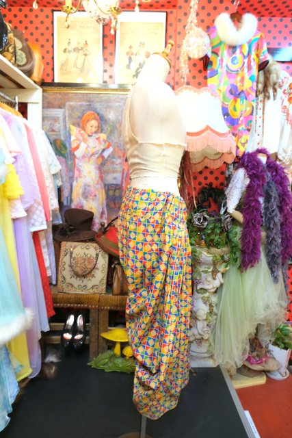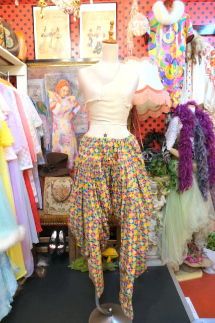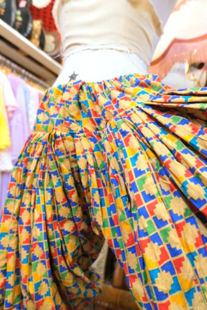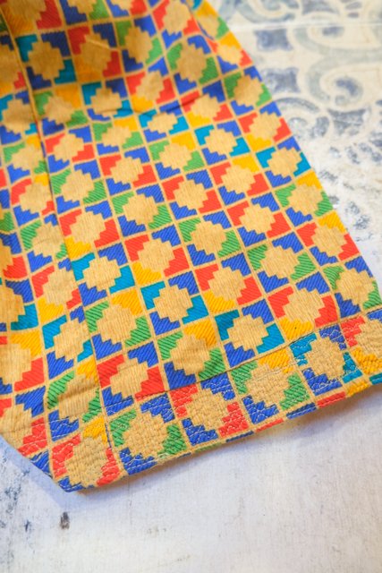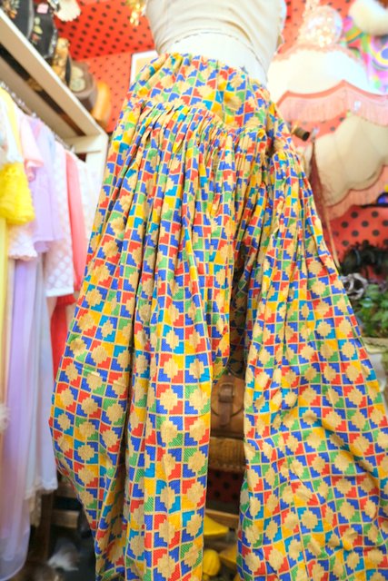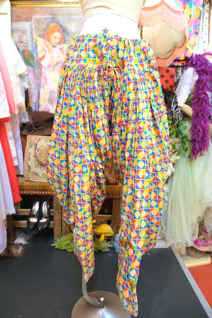 カラフルなエスニック模様にギャザーたっぷりのドレープ感が魅力的なヨーロピアンヴィンテージデザインパンツ ★SALE★