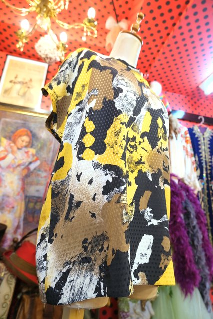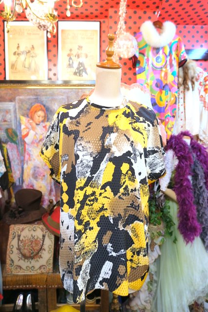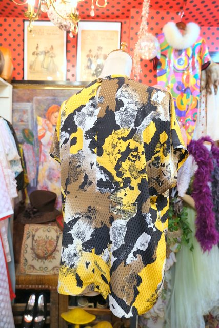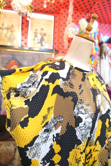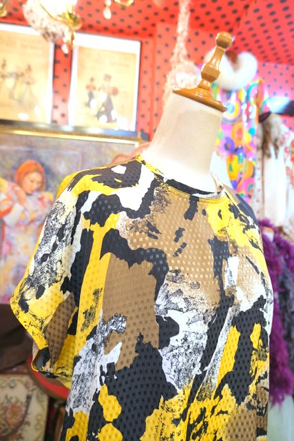 光沢があるスクエア模様にアニマル柄のようなデザインがカッコいい1980年代頃のヨーロピアンカットソー