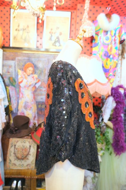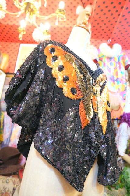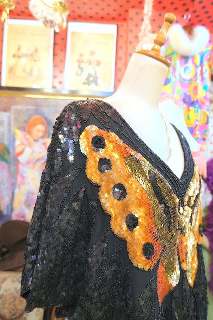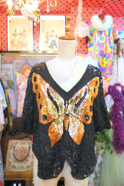 ヨーロッパ古着80sヴィンテージ蝶スパンコールトップス