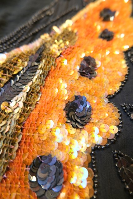 肌触りの良いシルクにエレガントゴージャスなスパンコール&ビーズの蝶デザインが魅力的な1980年代頃のヴィンテージカットソー パーティーやイベント衣装におススメ!