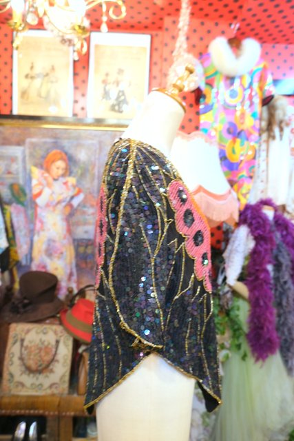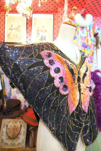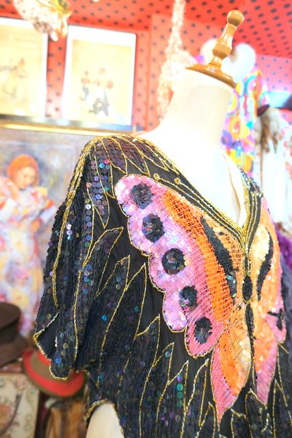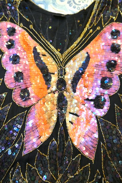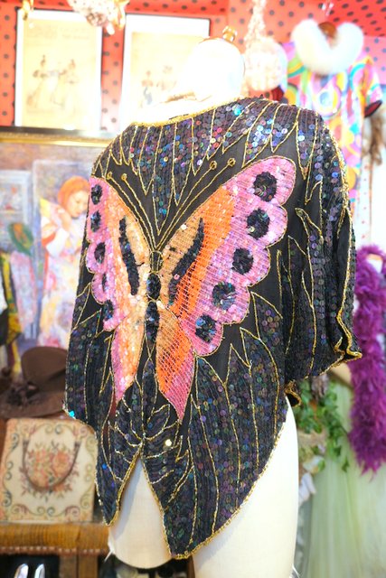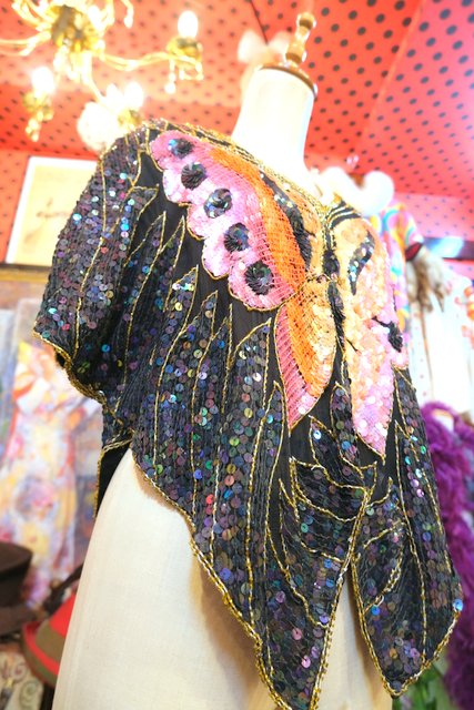 ヨーロッパ古着80sヴィンテージ蝶スパンコールトップス